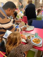 Rocham en train d'aider les enfants pendant le temps de Cantine. Ecole du Sacré coeur